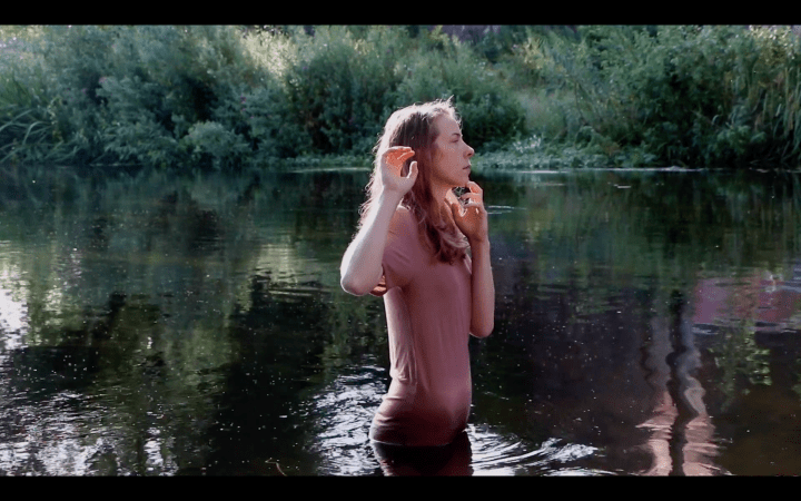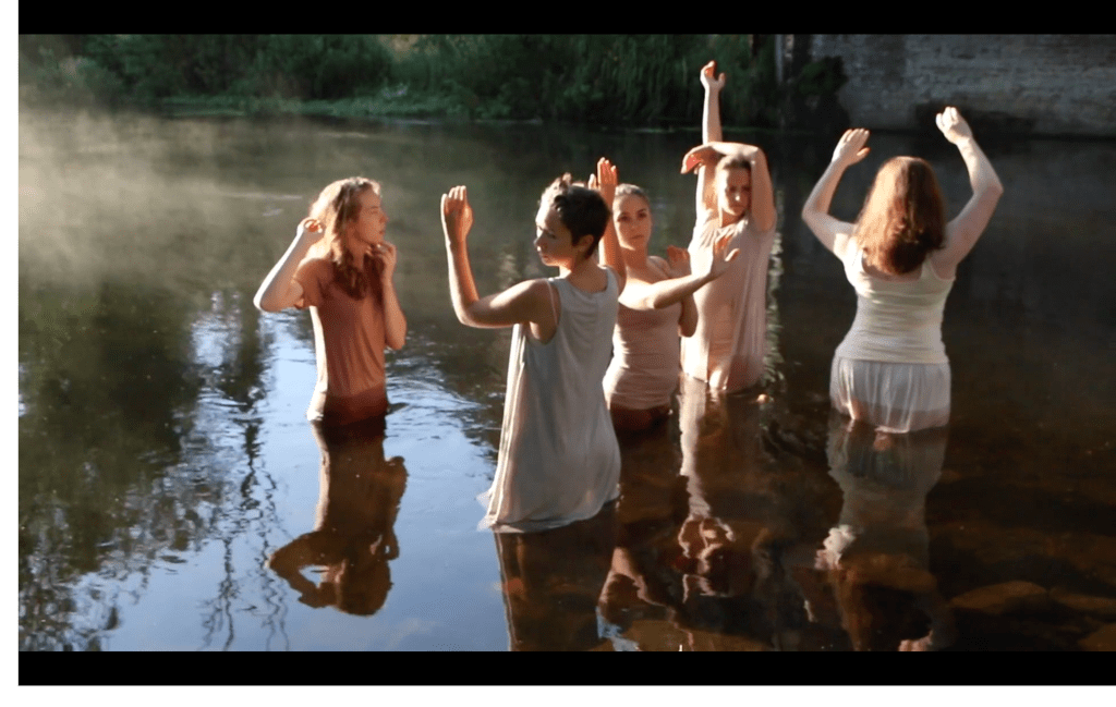 During the R&D of the live show, I was invited to record the process and capture scenes as they developed and changed. I represented the work as a tryptic of edited films and along with a binaural soundscape designed by Eoin Furbank, the films became part of a three-part digital installation that has been shown at various venues including being a featured work at Big Screen Southend. Below are screen shots from the second film, The Change filmed at 5am on a fresh summer morning in the River Stour.